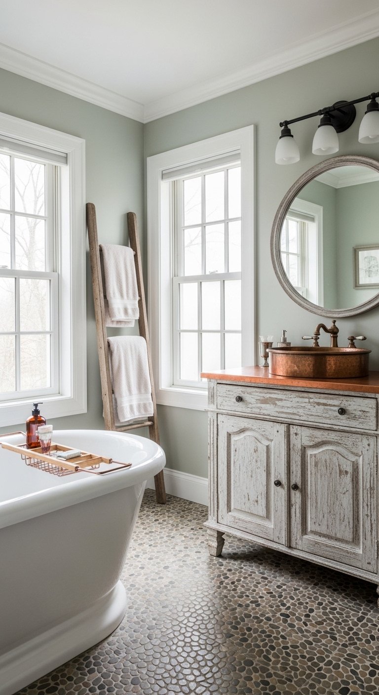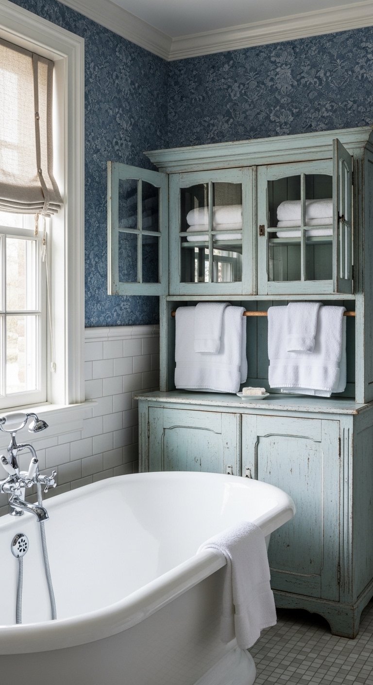 Start with one focal piece, like a patterned floor or a unique vanity, and build the room around it. Don’t rush. The best vintage bathrooms look collected over time.