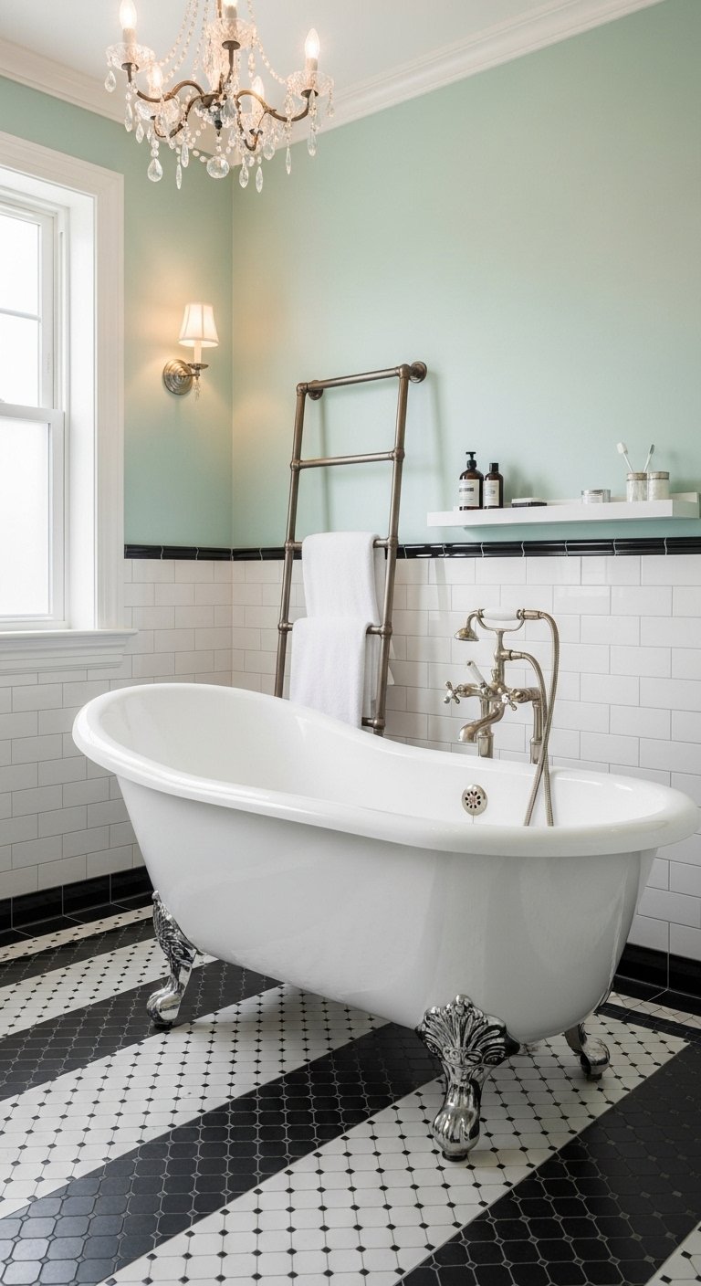 Absolutely. In fact, “Modern Vintage” is a top trend for 2025. The trick is to keep the “permanent” fixtures (tub, toilet, shower layout) vintage or classic white, and use modern functionality for the hidden parts (plumbing, waterproofing). You can also mix a sleek modern glass shower enclosure with vintage floor tiles to keep the room feeling open.