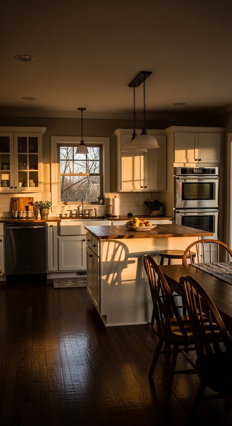 Focus on the “work triangle” (sink, stove, fridge). Keep these three close together to minimize steps. Use vertical space for storage so your counters stay clear. Place the tallest items (fridge/pantry) at the corners of the room to avoid blocking sightlines.