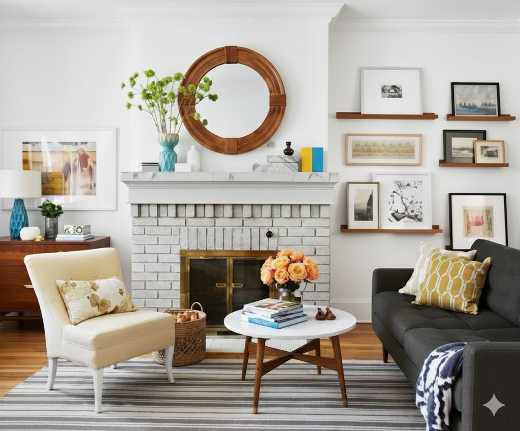 Collections find natural homes on mantels. Whether you collect vintage bottles, antique clocks, or ceramic figurines, the mantel provides a perfect showcase. The elevated position and focused lighting make collections look more important and valuable than they might elsewhere in the room. Just remember that less is often more. A few carefully chosen pieces often look better than crowding every available inch.