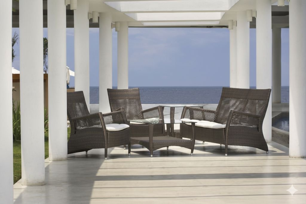 One pattern I notice in both designs is the attention to quality. Neither example cuts corners on materials or craftsmanship. The wicker furniture is clearly well-made, with that rich finish and sculptural shapes. The teak pieces are solid and built to last. This matters more in outdoor furniture than almost any other category. The weather is harsh. The sun bleaches colors. Rain and humidity warp cheap materials. Investing in quality pays dividends over years of use.