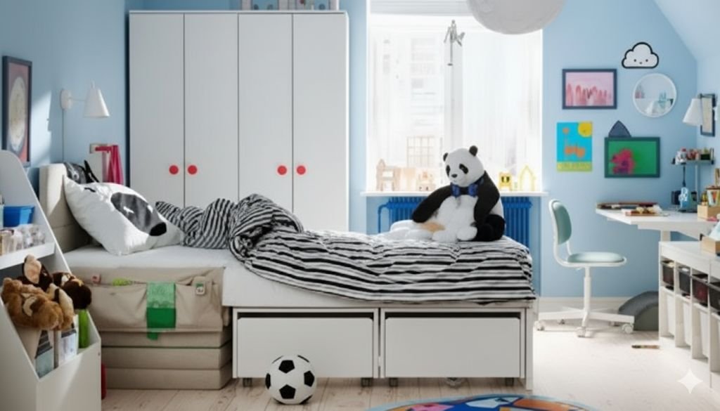 The layout of the room matters more than I first realized. You can’t just shove a bed against one wall and call it done. Kids need space to move around and play. They need their bed positioned where they can see the door because a surprising number of kids worry about not being able to see who’s coming in. They need their clothes within reach once they start dressing themselves, unless you enjoy picking out their outfits every single morning until they leave for college.