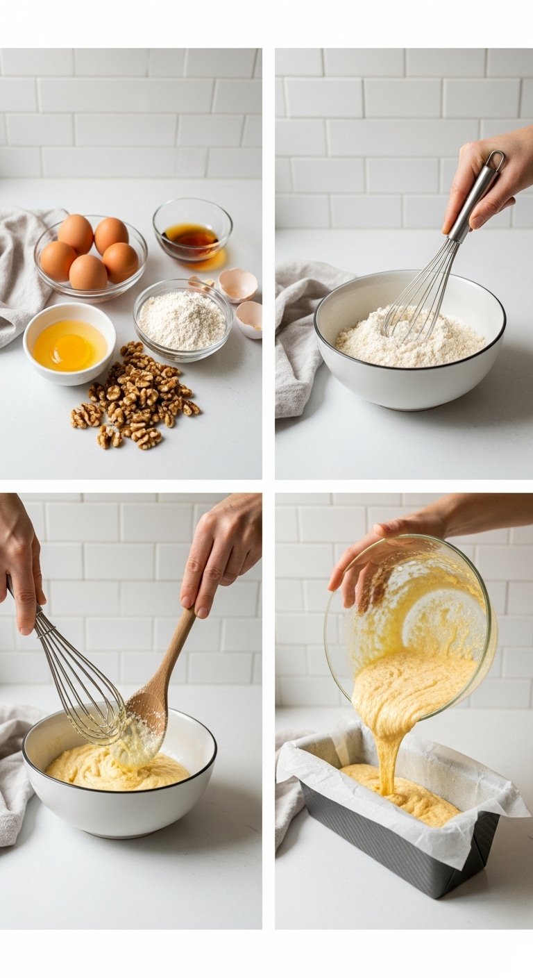 Combine: Gradually add the dry flour mixture to the wet ingredients. Mix with a spatula just until the flour disappears. Overmixing will result in a dense, tough loaf.
